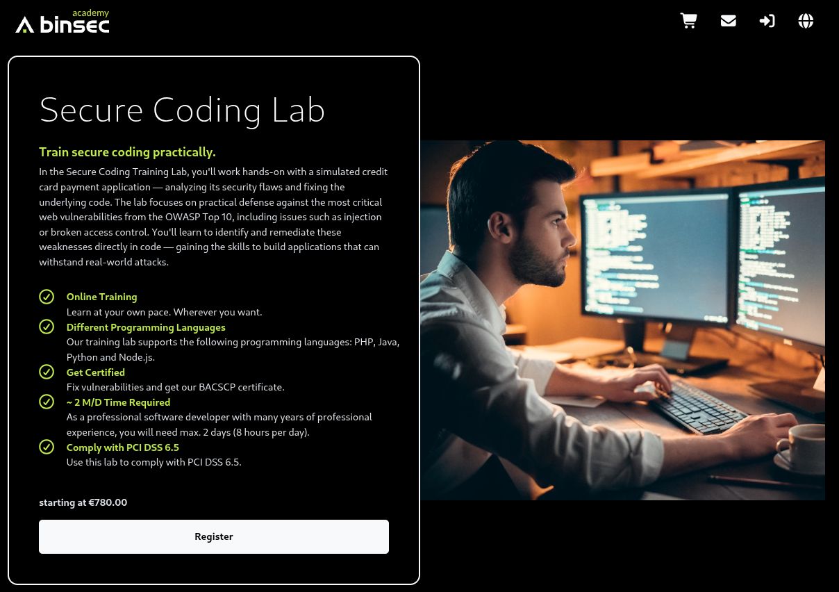 The binsec academy has released the Secure Coding Training Lab, a practice-oriented training platform for secure software development. Participants identify and remediate common security risks in web and API applications through structured code reviews on a realistic sample application. The lab focuses on key OWASP Top 10 vulnerabilities such as injection flaws and insufficient access controls. It teaches participants to detect security-relevant issues directly in the code and develop robust, secure applications.